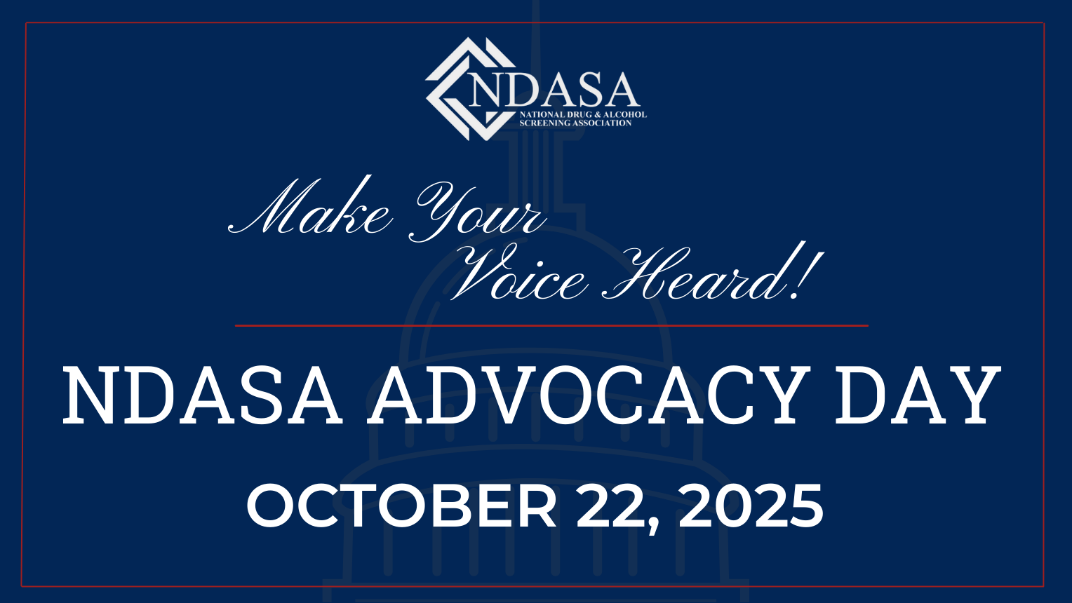 Because Workplace SAFETY DEPENDS on US! Join fellow NDASA members and industry partners in Washington, D.C., to advocate on behalf of our industry, public safety, and drug-free workplaces. Register >> This year, Advocacy Day will take place in conjunction with NDASA’s Mid-Year Training Event (October 23-24). Training and advocacy in the same week, all […]